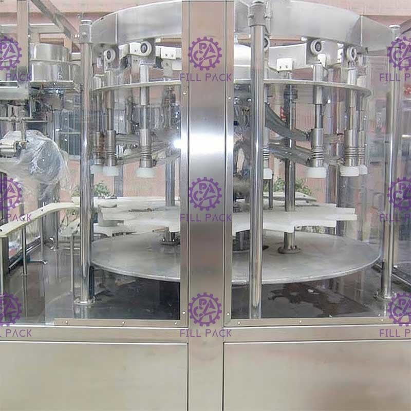 โรงงานบรรจุขวดน้ําแร่ใช้ในการผลิตเครื่องดื่มที่ไม่ใช้น้ําโซดา จากน้ําแร่บริสุทธิ์ที่บรรจุอยู่ในขวดพอลิเอสเตอร์ การซักผ้า, การเติมและการปิดกระปุกรวมอยู่ในเครื่องเดียว