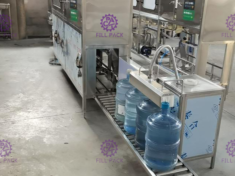 เครื่องบรรจุแกลลอนนี้รวมเข้ากับฟังก์ชั่นการล้างและเติมฝาขวดเข้าด้วยกัน
