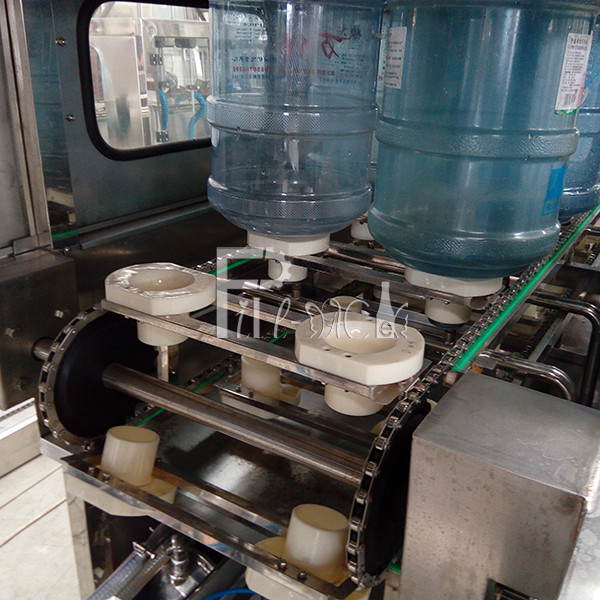 เครื่องบรรจุน้ำขวด 5 แกลลอนสามารถแบ่งออกเป็น 3 ขั้นตอนคือการล้างการเติมและการปิดฝารวม 36 สถานีการทำงานกระบวนการทำงานดังนี้
