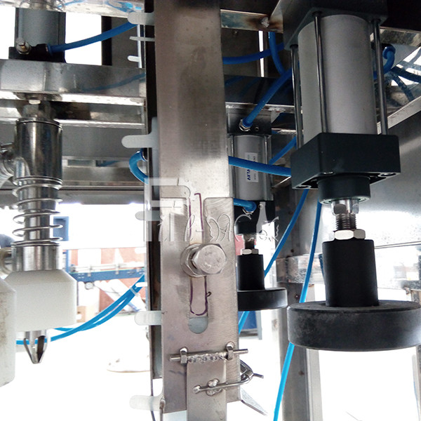5) หลังจากเสร็จสิ้นกระบวนการบรรจุถังที่เติมจะถูกผลักไปที่ตำแหน่งสูงสุดโดยกระบอกสูบหยุดกระบวนการทั้งหมดจะเสร็จสิ้นจนถึงขณะนี้