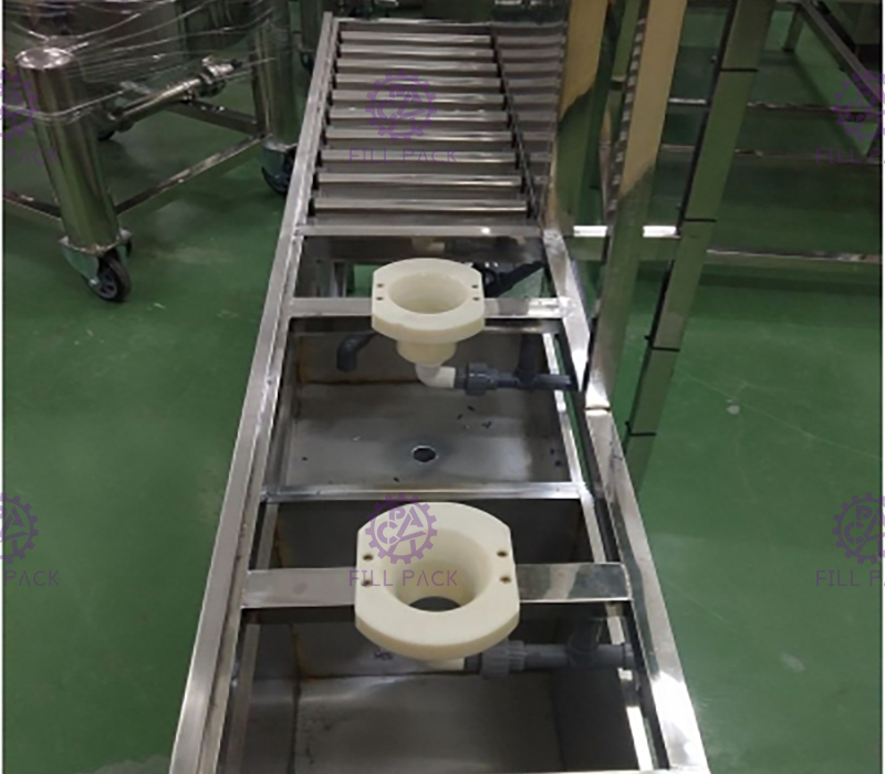 6) หลังจากบรรจุถังแล้ว ให้ย้ายไปยังแท่นปฏิบัติงานของเครื่องปิดฝา ปล่อยฝาด้วยมือและทำการปิดฝา