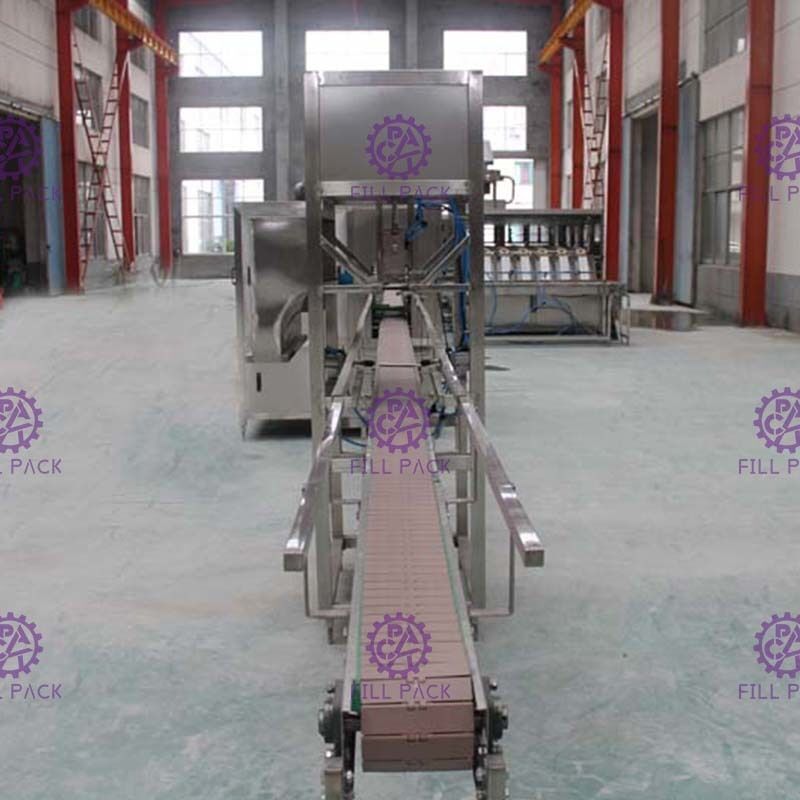 เมื่อกระป๋องแกลลอนเข้ามาในเครื่อง, หัว de-capping จะลงและอุปกรณ์เล็บจะถือแน่นด้านฝาปิดกระป๋อง, และจากนั้นยกกระป๋องที่จะเอาออก caps;และเมื่อหมวกถูกถอดออกอากาศจากเครื่องปรับอากาศจะพัดหมวกเข้าไปในกระเป๋าสะพาย